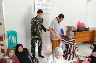 Babinsa BAS Gotong Royong Pengecoran Dak Langgar Desa Kapar
