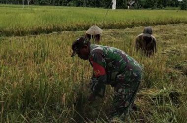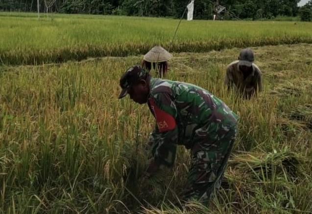 Wujudkan Ketahanan Pangan Wilayah, Babinsa Haruyan Dampingi Petani Panen Padi