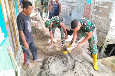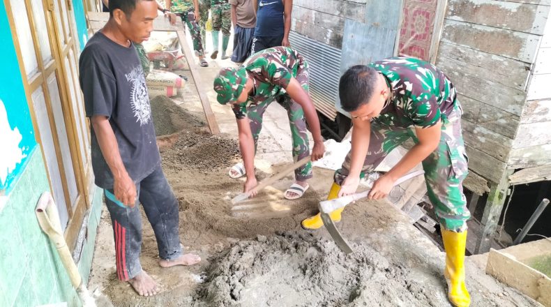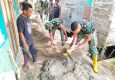 TNI dan Warga Persiapan Pengecoran Lantai Jembatan Garuda